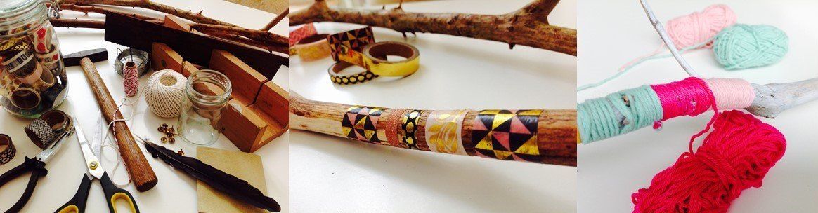 Decoreer de tak naar wens met Wasi-tape. Of omwikkel een paar stukjes met gekleurd draad voor een vrolijk effect.